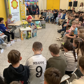In der Vorbereitungsphase des schulischen Lesewettbewerb der Sonnenschule war die Aufregung in allen Klassen spürbar. Mit viel Engagement wählten die Kinder passende Bücher aus, übten ihre Texte und präsentierten diese vor ihren Mitschülerinnen und Mitschülern. Schließlich wurden in jeder Klasse die zwei besten Vorlesenden bestimmt, die ihre Klasse im großen Wettbewerb vertreten durften.